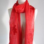 ストール スカーフ グラデ 刺繍レッド シルクストール シルクスカーフ-11803