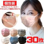 【個包装】不織布 カラーマスク 30枚 やわらかマスク ますく 耳が痛くならない 血色カラー 使い捨て 白 黒 グレー ふつうサイズ