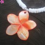 ハワイアンアクセサリー シェルプルメリア&プカシェル ネックレス HA7156オレンジ 在庫限り 送料無料