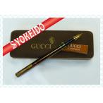 グッチ 万年筆 コンバーター式 ブラウン×ゴールド 緑赤シェリーライン カートリッジ2個付