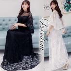 セール ドレス 結婚式 お呼ばれ 発表会 謝恩会 大きいサイズ 大人優雅ケープ風花柄総レースロングドレス M L 2L 3L 4L 5L サイズ