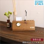 古材 ペンスタンド 高級 時計付き イチイの木 おしゃれ 北欧 アンティーク家具 卓上 書斎 ペン立て 机上 天然木 大正ロマン 昭和レトロ 和モダン
